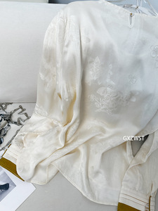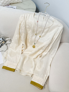 【现货】新中式人丝提花圆领长袖衬衫女2025秋季新款国风气质宽松