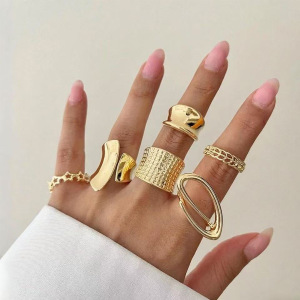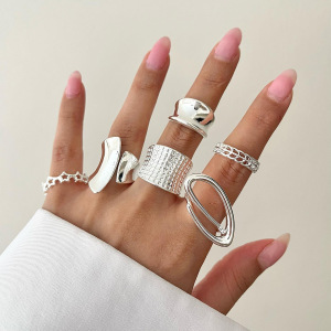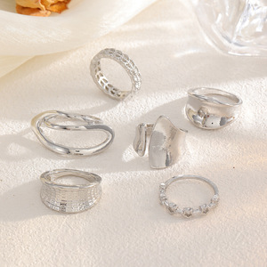 跨境戒指套装批发女饰品小众设计轻奢高级感光面手饰指环个性配饰