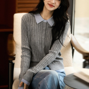|凡凡难哄|25春新莱赛尔丝羊毛假两件拼接绞花针织上衣の