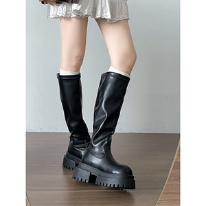 黑色英伦风粗跟厚底长筒靴女2025新款秋季显瘦不过膝复古骑士靴子