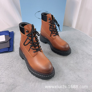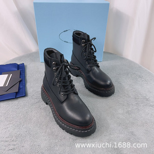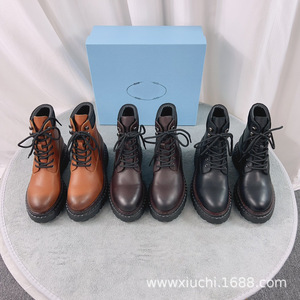 2025P家新品圆头厚底系带马丁靴女士复古增高马丁靴高端短靴女靴