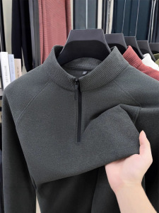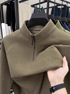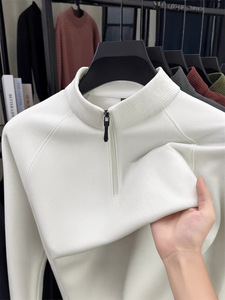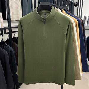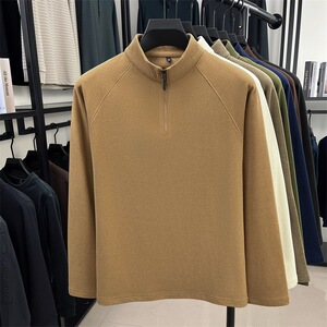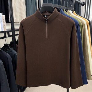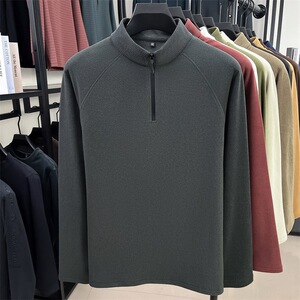 直播跨境男士半拉链立领长袖t恤2025秋冬新款中青年休闲百搭卫衣