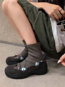 巨好看2025新款时尚真皮厚底运动风靴小个子增高瘦瘦靴弹力马丁靴