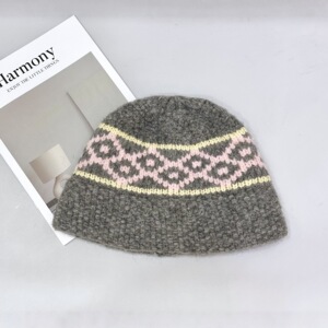 批发25年早秋新款手工编织提花针织渔夫帽女显脸小水桶帽男女同款