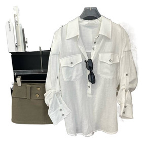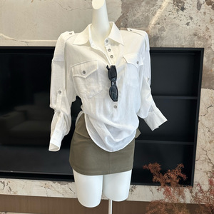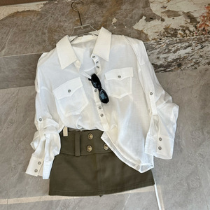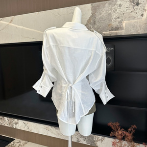 熹凤梨 辣妹2025秋季天丝亚麻透气舒适可调节袖袢后腰绑带衬衫女