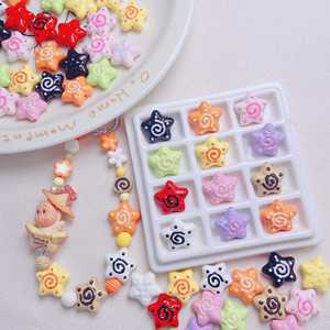 亚克力烤漆手绘鱼饼五角星通孔串珠手工DIY手机链钥匙扣包挂材料