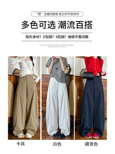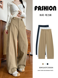 高品质美式弯刀裤女春秋新款宽松休闲高腰阔腿裤小个子直筒工装裤