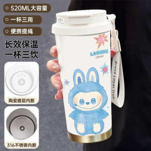 新款卡通高颜值女咖啡杯拉布布316不锈钢保温杯提绳便携水杯批发