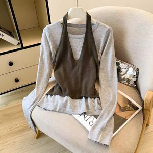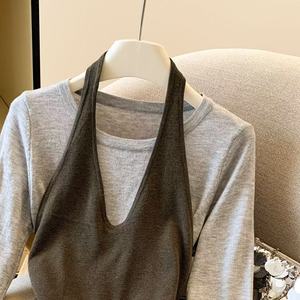 广州十三行高货爆款~新款韩系时尚洋气吊带背心叠穿长袖T恤女上衣
