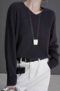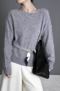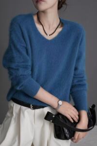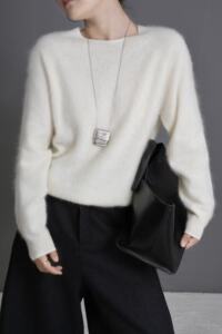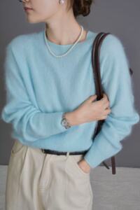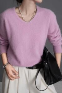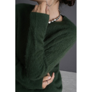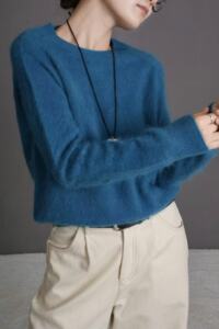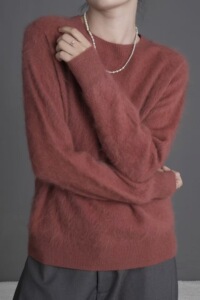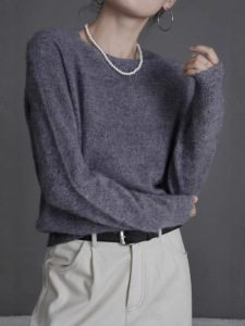 5羊绒高奢!拉绒羊毛羊绒衫柔软不扎岛精无缝圆领针织衫上衣女秋