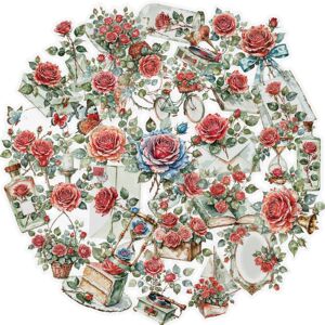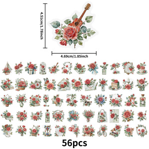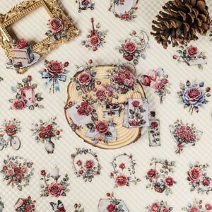 56张跨境新款玫瑰花透明pet贴纸 高颜值创意手工DIY素材文具贴画