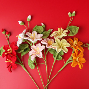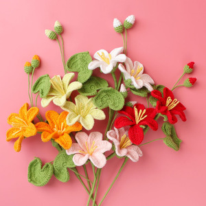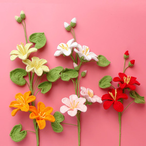 成品手工编织雪五油桐花束家居花瓶插花摆件钩织仿真花毛线花礼物