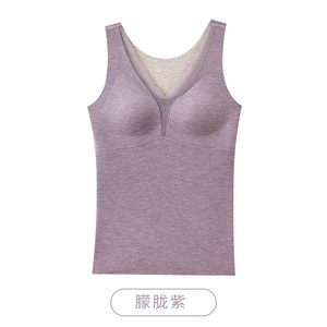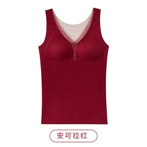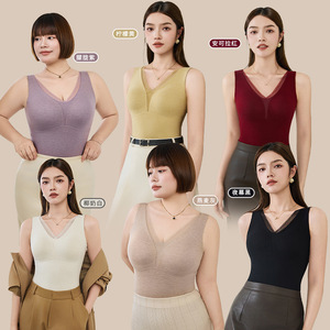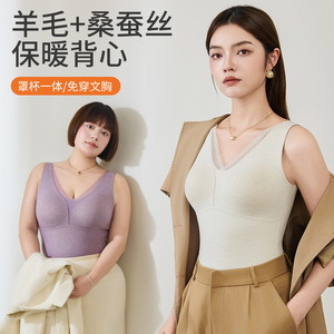 新品羊毛蚕丝保暖背心双面磨绒带胸垫免穿文胸打底上衣秋冬季