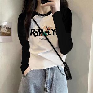 秋季撞色内搭纯棉印花长袖T恤女2025新款欧货正肩宽松漂亮小上衣