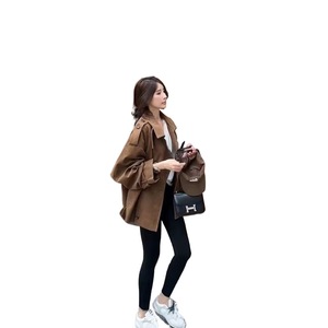 2025初冬新款咖色麂皮绒开衫外套女设计感小众立领短款工装风衣潮