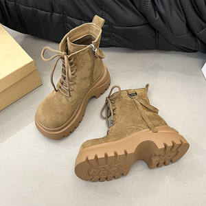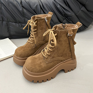 超火美拉德马丁靴女2025秋季新款厚底增高百搭大黄靴复古系带短靴