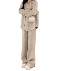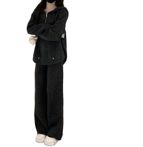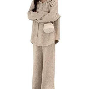新款显瘦纯色韩版春秋季时尚两件套宽松女连帽卫衣休闲运动服套装
