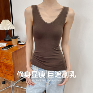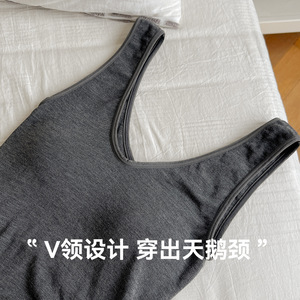 2025年秋冬新款无缝带胸垫V领背心女修身显瘦保暖内搭打底上衣