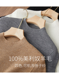 扬子纱100羊毛 肌理鱼骨纹半高领长袖针织套头毛衣女秋冬新款