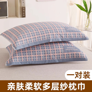 加厚全面纱布枕巾家用吸汗亲肤柔软防滑枕头套加大枕巾纯棉一对装
