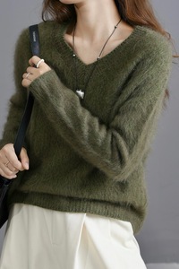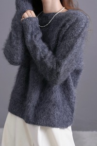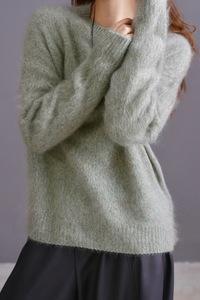 重磅!100羊毛拉绒拉毛加厚羊毛衫花纱慵懒毛衣针织套头上衣女