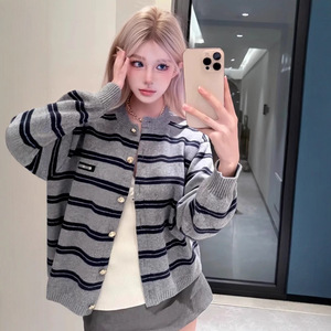 正确版本原标MIU缪家小红书网红款条纹针织衫开衫毛衣外套男女