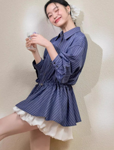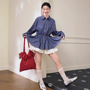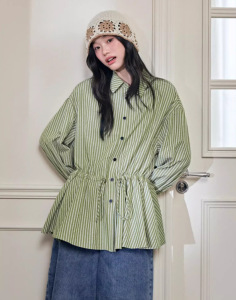 上衣长袖衬衫开衫翻领外套25秋季新款女条纹衬衣KSL2508001