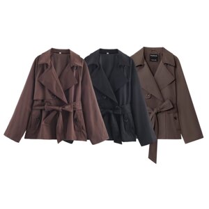 Z跨境欧美风2025新款时尚气质女装批发长袖收腰短款风衣1282726
