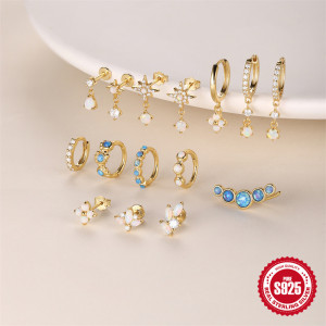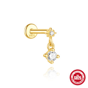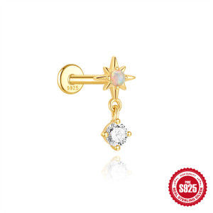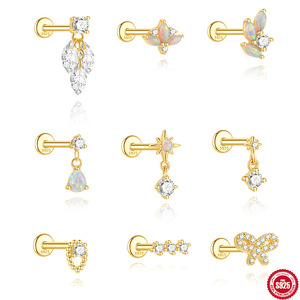 s925纯银日常佩戴几何拼接澳宝蝴蝶结镶钻软骨螺旋穿刺耳钉16G