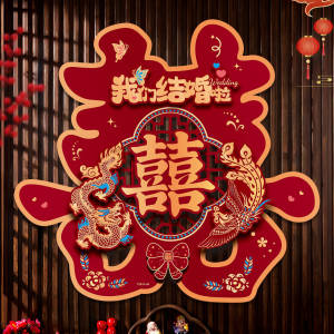 结婚喜字背景墙贴婚房大门装饰超大贴纸婚庆用品专用囍字贴布置用