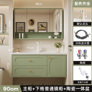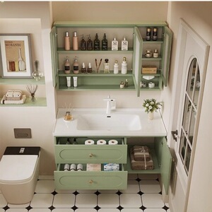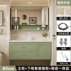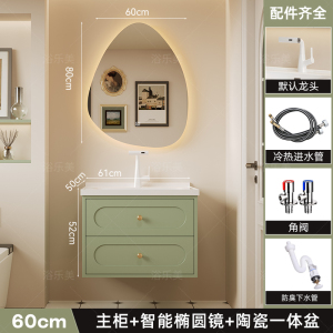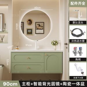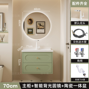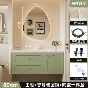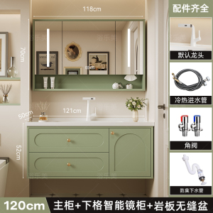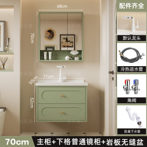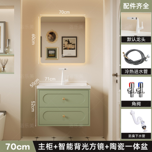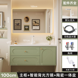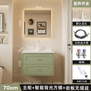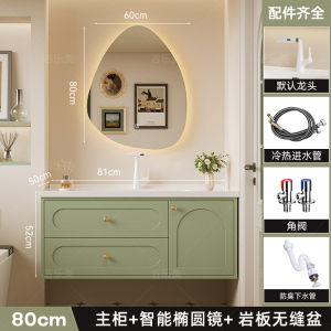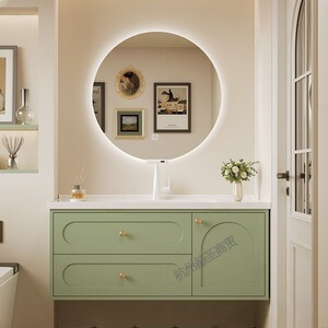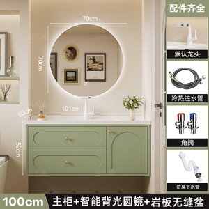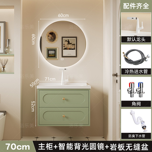 法式田园风橡木岩板无缝盆浴室柜组合简约卫生间洗漱台洗手池脸盆