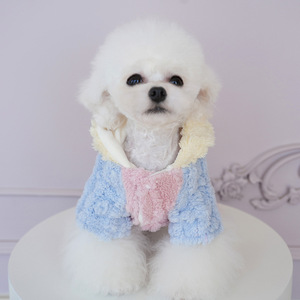 新款秋冬季狗狗衣服蝴蝶结睡棉衣迪比熊保暖宠物过冬绒衣批发代发