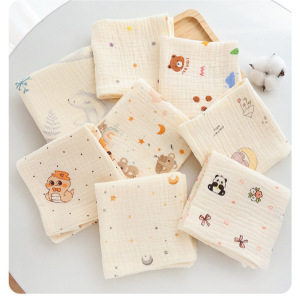卡通四层绉布新生儿方巾柔软吸水宝宝口水ins韩版棉纱布洗脸巾