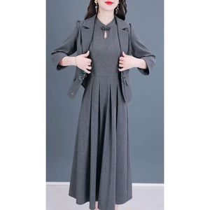 2025年秋季新款气质显瘦国风盘扣长袖外套背心裙新中式两件套装女