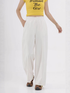 lulu同款女士腰部褶边阔腿裤高腰显瘦宽松休闲裤夏季速干吸芯长裤