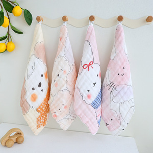 六层高密纯棉方巾宝宝口水巾婴儿a类洗脸巾卡通儿童小毛巾洗漱巾