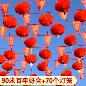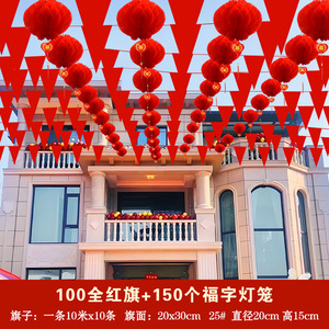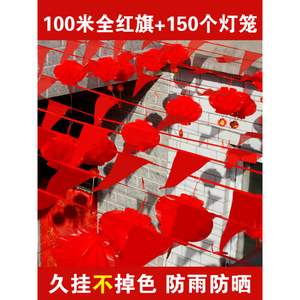 彩旗装饰结婚用的小红旗婚庆三角串旗庭院场景布置户外婚礼农村院
