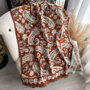 秋冬季时尚腰果花印花气质披肩女士优雅轻奢出现外搭保暖围巾围脖