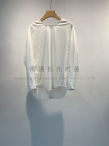 [氧气清冷感]J*N设计感圆领长袖衬衫女/挺括轻薄纸感后背立体叠片