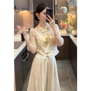 2025夏季两件套新中式国风套装气质盘扣短袖上衣阔腿裤女