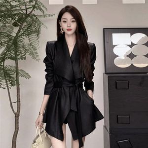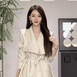 韩系绑带西装外套女2025春季气场强大新款风衣宽松显瘦长袖西服潮