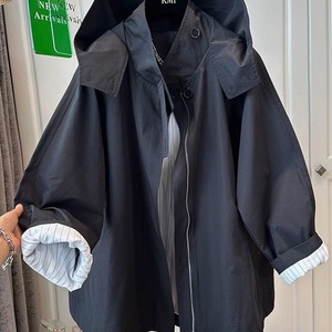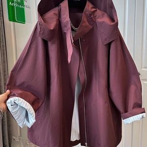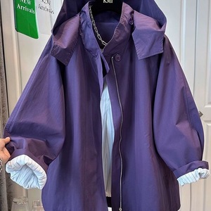 大码紫色连帽工装风休闲风衣外套女宽松上衣春季新款冲锋衣潮