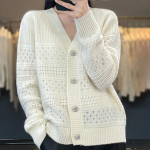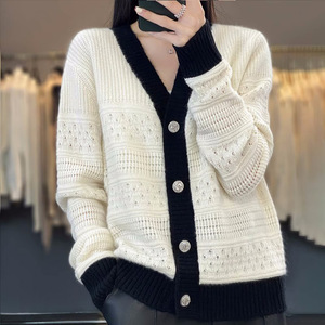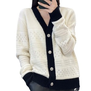 2025秋冬季新款慵懒风高级感毛衣针织开衫女装休闲拼色长袖外套女