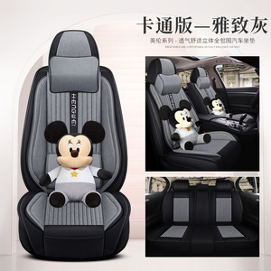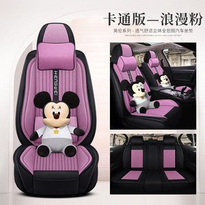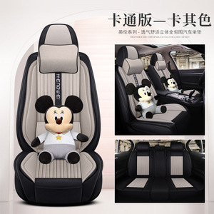 四季通用汽车座套全包专用布艺座椅夏季网红新卡通坐垫亚麻女座位