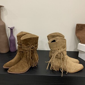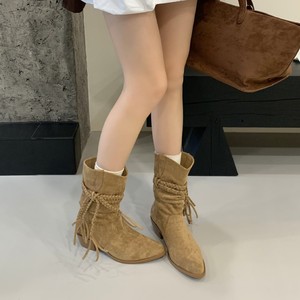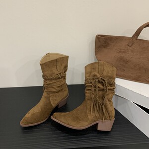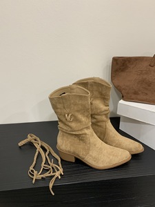 1337-6~粗跟法式复古尖头西部牛仔短靴女靴子2025年秋季新款
