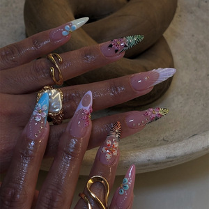 30pcs跨境杏仁穿戴甲甲ins风多彩色假指甲贴片立体条纹金钢珠指甲