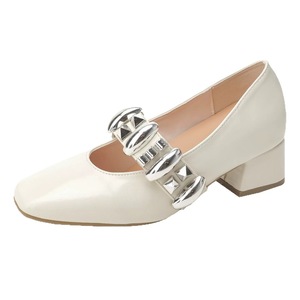 内增高7cm~方头复古风金属一字带单鞋女浅口小个子配裙子玛丽珍鞋