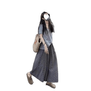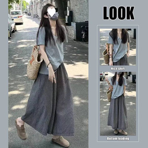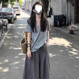 阔腿裤夏季薄款套装两件套垂坠感长裤宽松格子裤裙女夏季裤装休闲