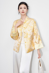 2511510-瑞彩琼纹金线亮闪浮雕提花国风两面可穿外套上衣女秋南油