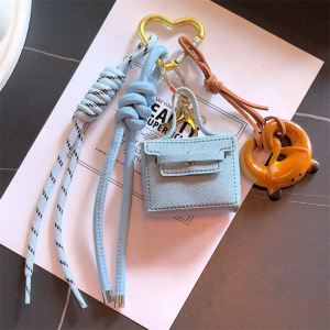 跨境miu系皮革小方包创意礼品零钱包钥匙扣耳机包钥匙链包包挂件